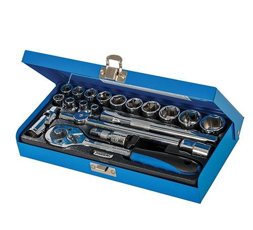 Steckschlüsseleinsätze: 6, 7, 8, 10, 11, 12, 13, 14, 15, 16, 17, 19, 21 und 22 mm