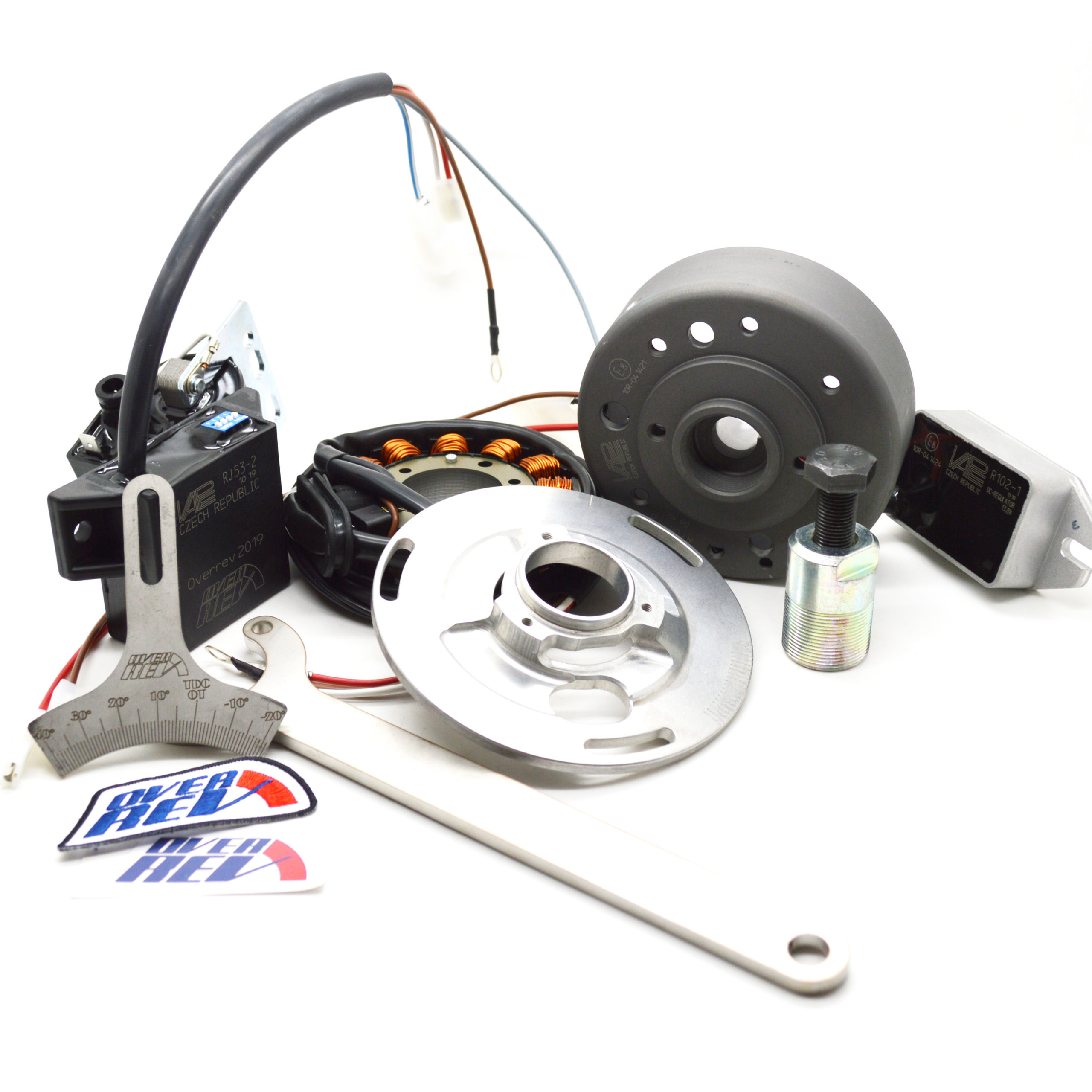Mit der OVERREV Zündung bieten wir Euch das Beste was aktuell am Markt zu finden ist. Alle Vorteile einer modernen Zündanlage, wie ausreichend Strom für die gesamte Beleuchtung und 16 verschiedene Zündkurven. Die OVERREV Zündung verstellt den Zündzeitpunkt Drehzahlabhängig von früh auf spät. Je nach Aufbau und Ausrichtung des Motors können über 4 Jumper die jeweiligen Zündkurven ausgewählt werden.