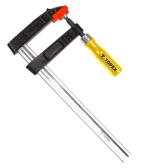 Hochwertig ausgeführt mit Kunststoffabdeckungen auf den Spannflächen, zum Schutz des Werkstückes vor Kratzern, einem lackierten, ergonomisch geformten Holzgriff und eine rutschfeste Führungsschiene mit Riffelung für optimales Spannungsergebnis.